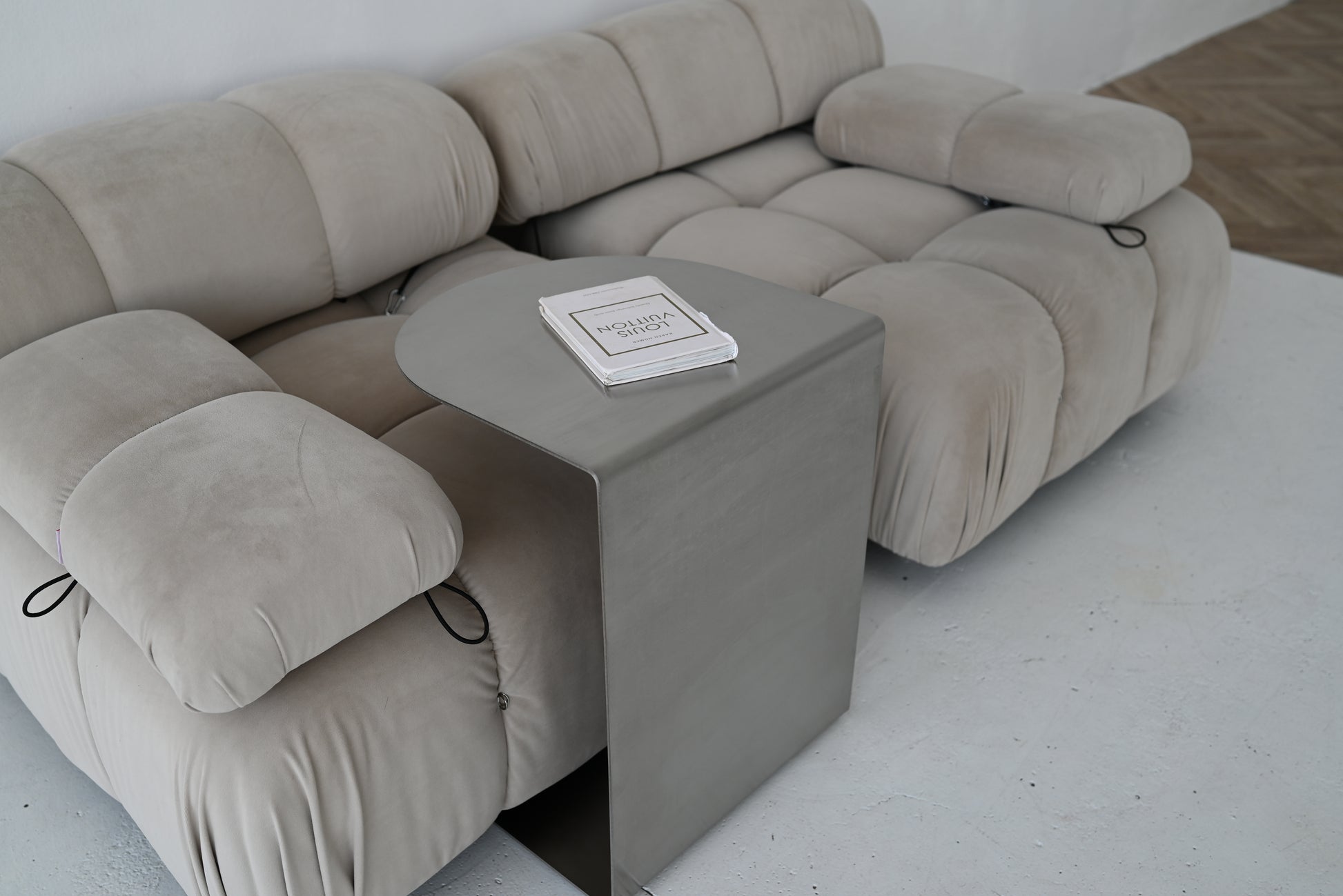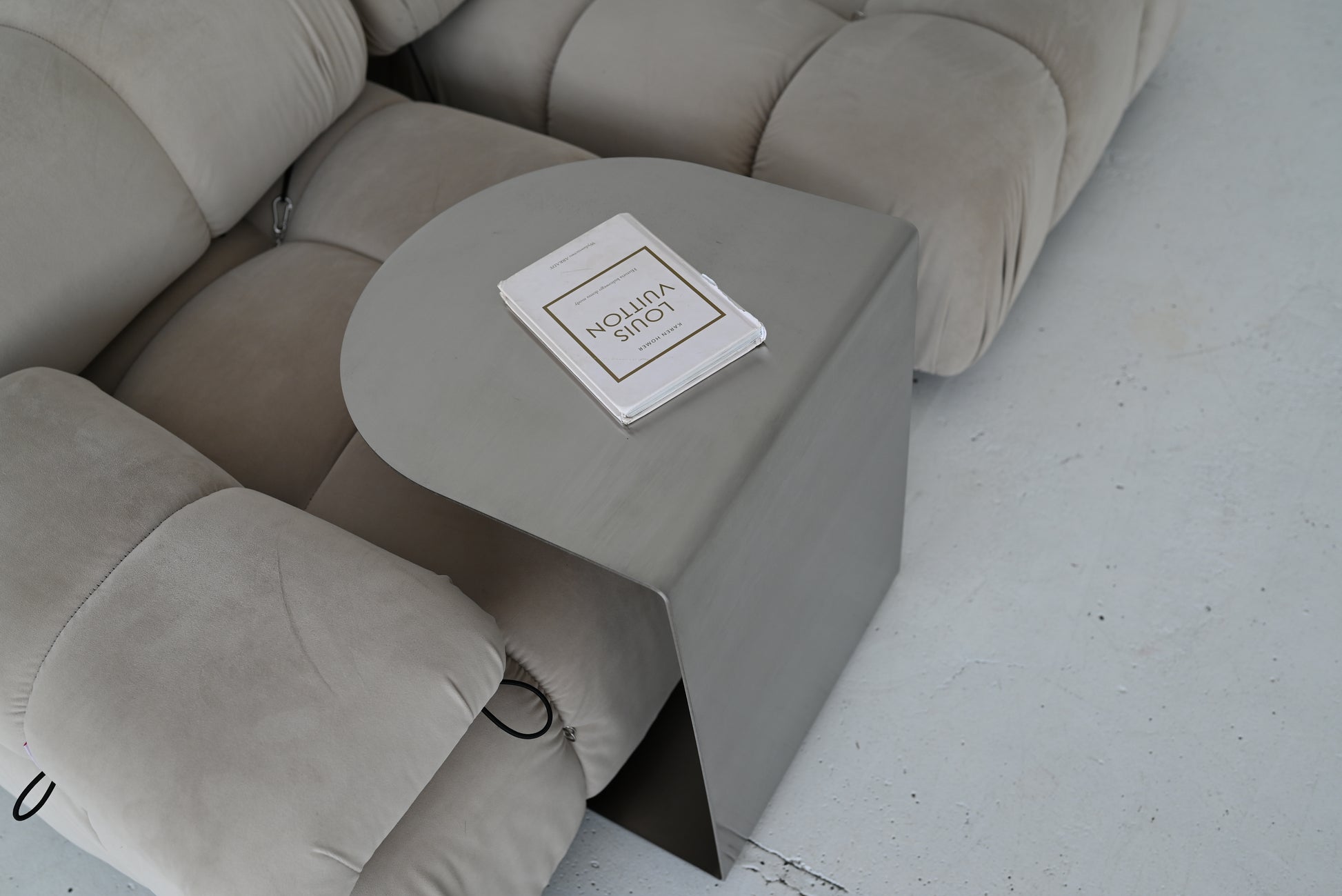A handcrafted C-shaped side table made from brushed stainless steel. Minimalist, durable, and ergonomic – designed for modern living where form meets function. Perfect as a laptop stand, reading companion, bedside table, or a sleek accent for sofas and armchairs.